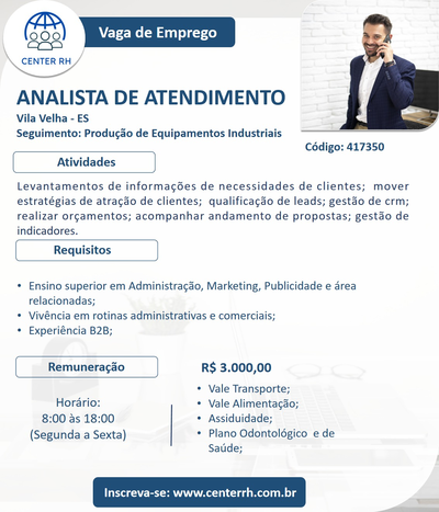 EMPRESA DE PRODUÇÃO DE EQUIPAMENTOS INDUSTRIAIS CONTRATA PROFISSIONAL DE PRODUÇÃO.