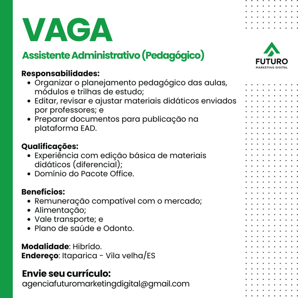 Apoiar a Coordenação Pedagógica na organização, estruturação e atualização dos conteúdos educacionais, garantindo que aulas, materiais e planejamentos estejam alinhados, padronizados e preparados para publicação na plataforma digital.