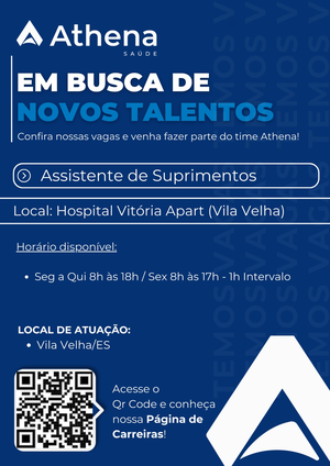 Estamos com oportunidade aberta para Assistente de Suprimentos no novo Hospital que será inaugurado em Vila Velha! 🩵