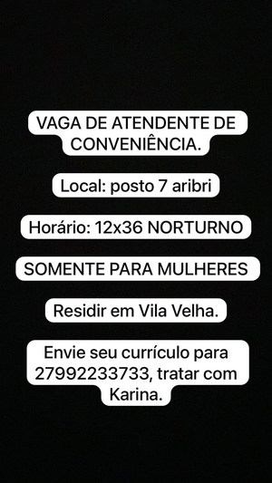 VAGA DE ATENDENTE DE CONVENIÊNCIA.