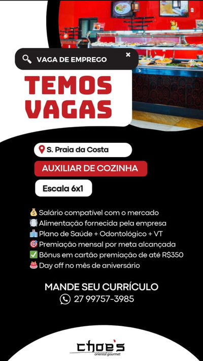 Exibir dicasCuidado com ofertas de emprego que solicitam o pagamento de taxa, exame admissional ou compra de certificados de cursos.