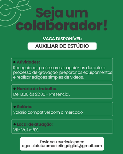 Será responsável por recepcionar os professores e apoiá-los durante todo o processo de gravação. Atuará na preparação de equipamentos, controle de qualidade dos materiais audiovisuais e em edições básicas de vídeo. Ideal para quem deseja crescer na área de produção digital educacional.