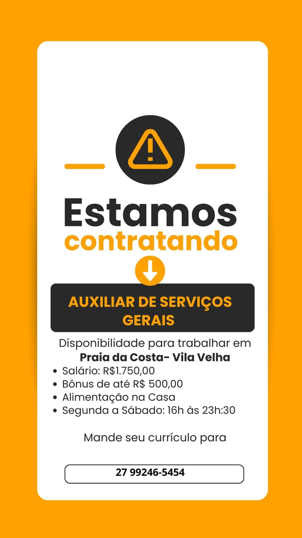 Exibir dicasCuidado com ofertas de emprego que solicitam o pagamento de taxa, exame admissional ou compra de certificados de cursos.