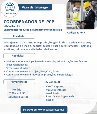 COORDENAÇÃO DE CHÃO DE FÁBRICA