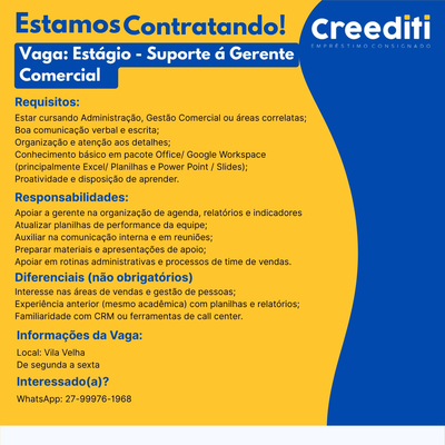 Apoiar em rotinas administrativas e processos de time de vendas.