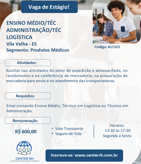 Estágio Ensino Médio - Téc em Logistica - Téc em Administração