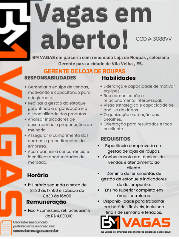 Experiência comprovada em gestão de lojas de roupas.