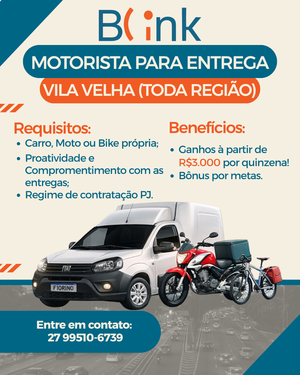 A Blink está contratando motoristas para entrega em toda a região de Vila Velha.