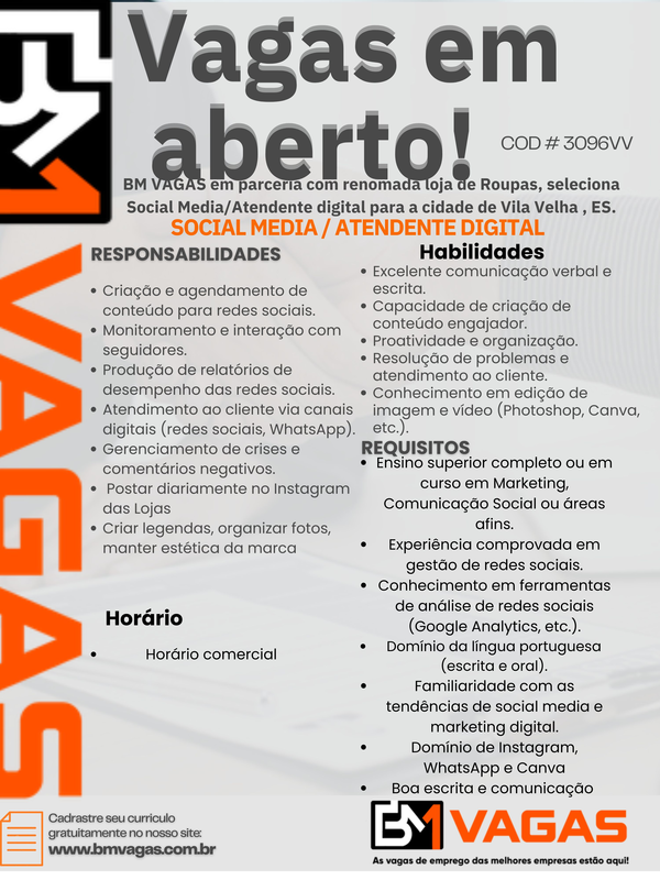 Ensino superior completo ou em curso em Marketing, Comunicação Social ou áreas afins.