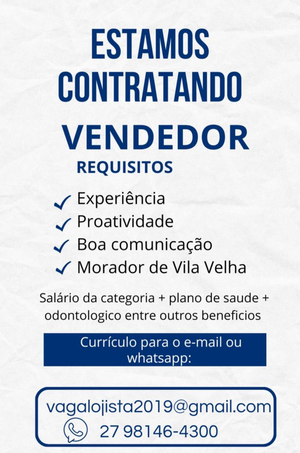 Ao enviar seu currículo informe o nome da vaga