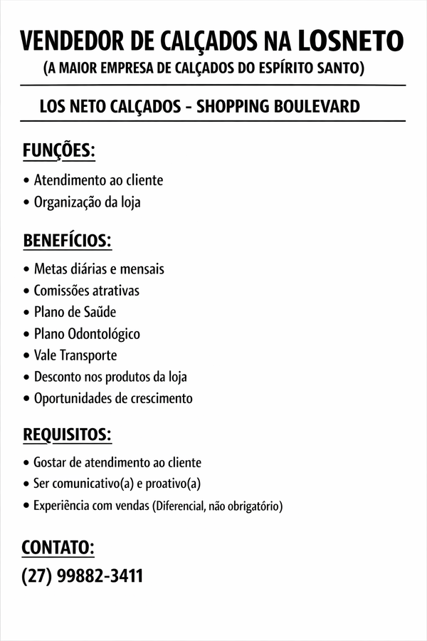 Vendedor de calçados na LOSNETO - (A maior empresa de calçados do Espírito Santo)