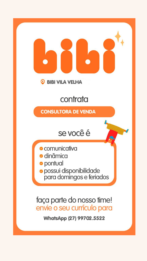 Vaga para vendedora, em loja do shopping vila velha.