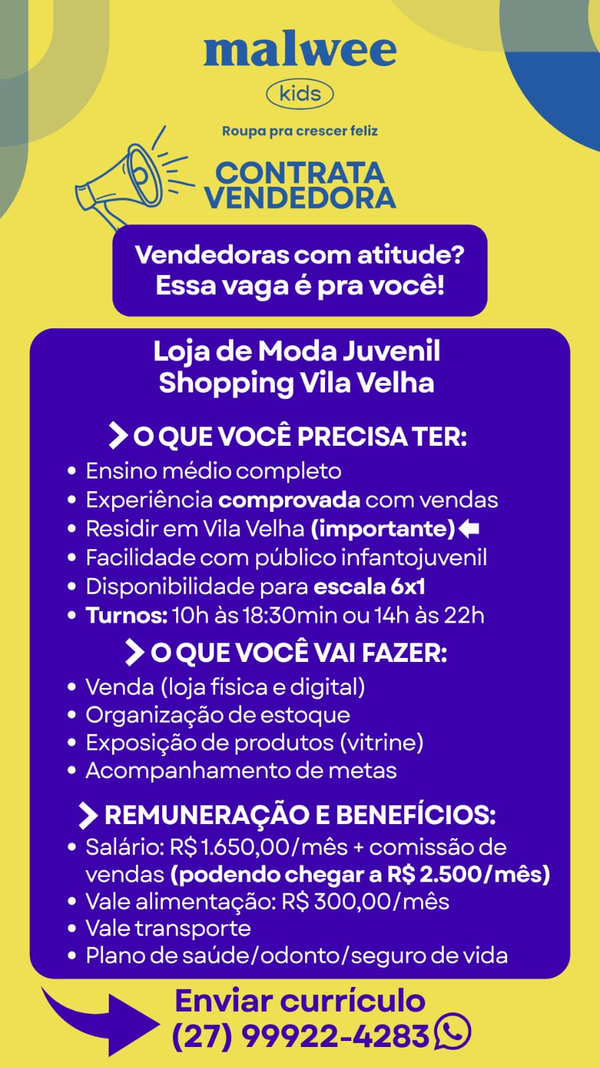 Ao enviar seu currículo informe o nome da vaga
