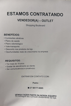 Exibir dicasCuidado com ofertas de emprego que solicitam o pagamento de taxa, exame admissional ou compra de certificados de cursos.